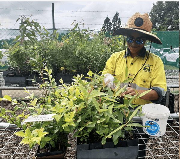 Fast-growing eucalypt species are being planted to form the forest canopy, including species such as blue gum (Eucalyptus tereticornis) which is also preferred source of habitat and food for koalas. Other species planted include brush box (Lophostemon confertus), a fast-growing pioneer species that can help re-establish woodlands, and forest sheoak (Allocasurina torulosa), which is used for habitat by glossy black cockatoos.